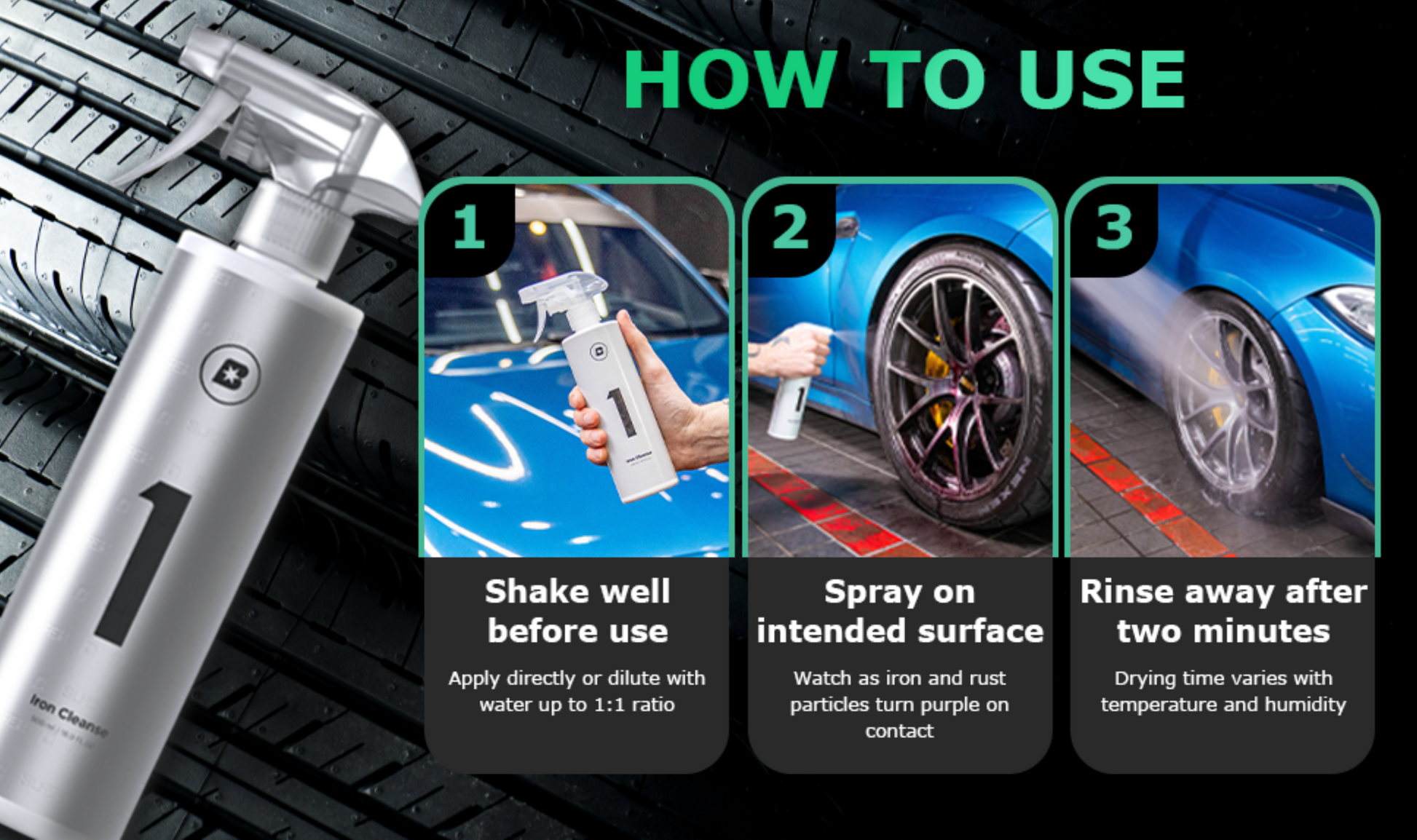 BLASK IRON CLEANSE is an easy-to-use pH-neutral iron remover that effectively removes brake dust and iron particles that penetrate deep into the painted surfaces and cause corrosion. Used best with Blask No.2 Wheel Cleanse