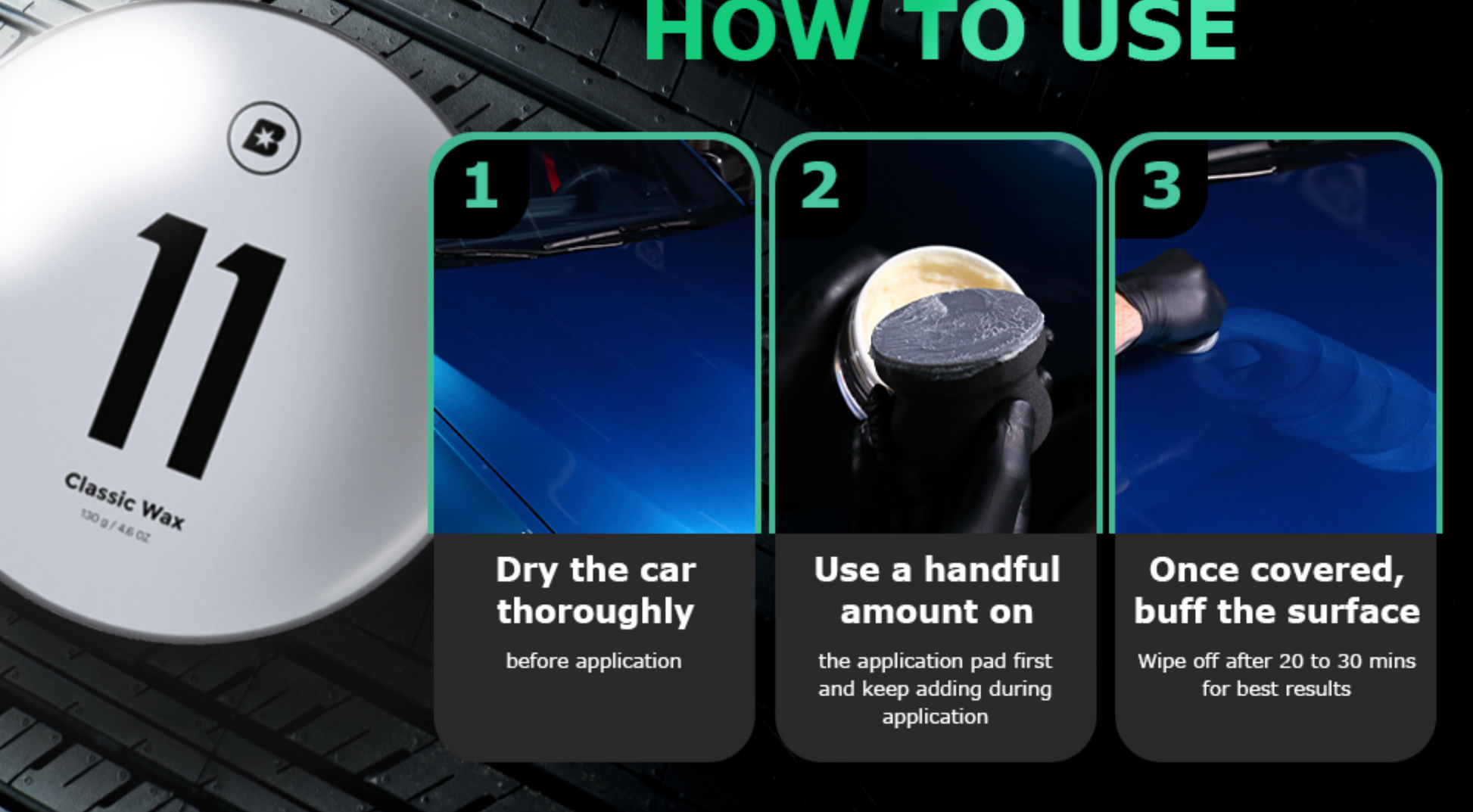 BLASK CLASSIC WAX is made from premium natural carnauba extracted from palm trees (40%), SiO2 Ceramic, and Graphene. This unique combination of Carnauba Wax and Graphene provides ultimate protection and hydrophobic performance while the SiO2 ceramic seal uneven surfaces.
