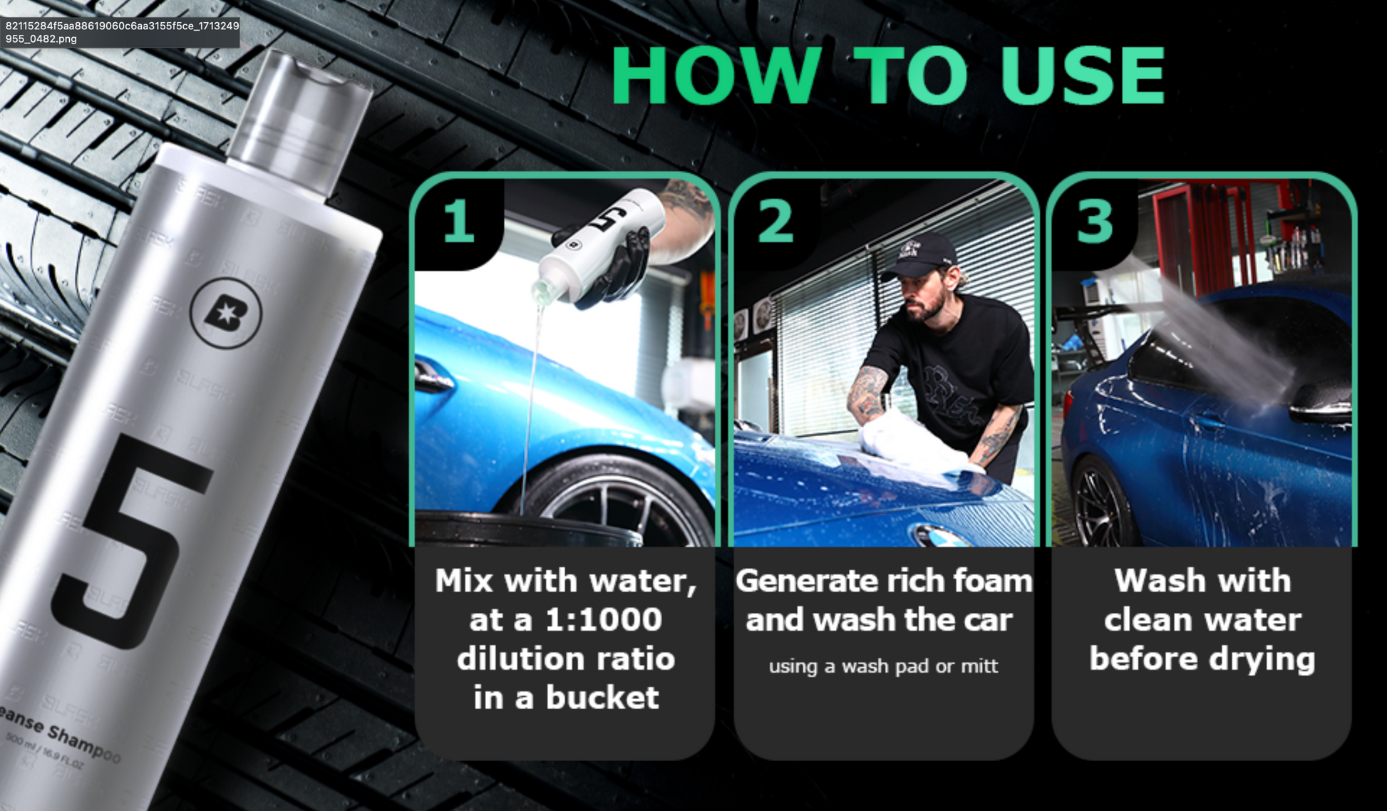 BLASK CLEANSE SHAMPOO is a highly concentrated shampoo that provides rich foam and powerful detergents to clean your car and keep wax and glass coating layers safe.